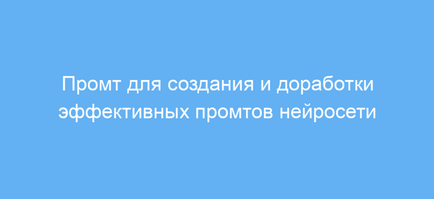 Данный промт особенно эффективен для пользователей, которые не уверены, как составить правильный запрос к нейросети, или для тех, кто хочет научиться этому, улучшая свои навыки формирования промтов.