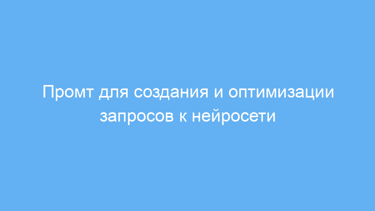 Этот промт создан для тех, кто хочет научиться правильно формулировать запросы к нейросетям. Он помогает быстро достигать нужного результата, оптимизируя исходный запрос. Такой подход особенно полезен копирайтерам, маркетологам, исследователям и всем, кто работает с искусственным интеллектом.