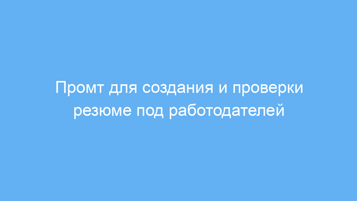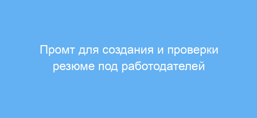 Этот промт подходит всем, кто хочет подготовить или усовершенствовать своё резюме с учётом конкретной профессии и требований работодателей. Он особенно полезен соискателям, которые не уверены, как грамотно оформить свои данные, систематизировать опыт и выделить ключевые навыки. Также промт помогает сверить уже готовый документ, выявить пробелы и дополнить важной информацией.