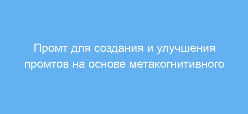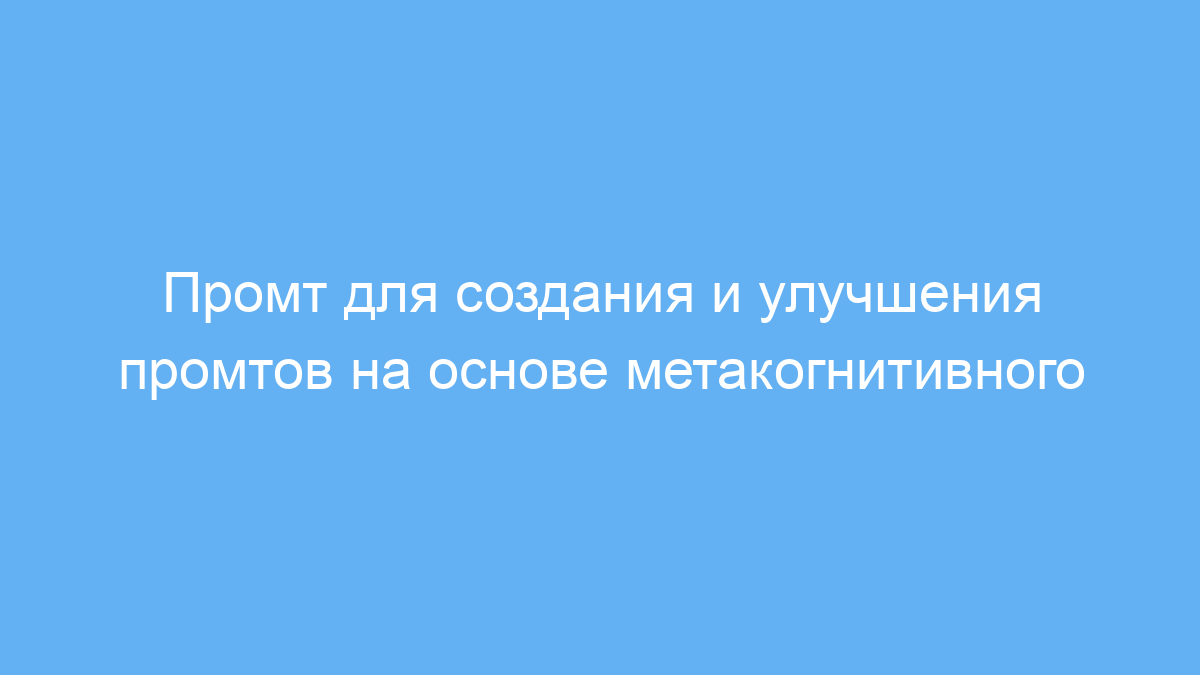 Промт решает задачи повышения точности и релевантности генерации контента, а также позволяет выявить слабые места в формулировках запросов. Благодаря структуре, основанной на метакогнитивном подходе — то есть осознании и контроле собственного мышления при работе с промтами — пользователь получает пошаговый алгоритм для оценки, анализа и улучшения своих запросов.
