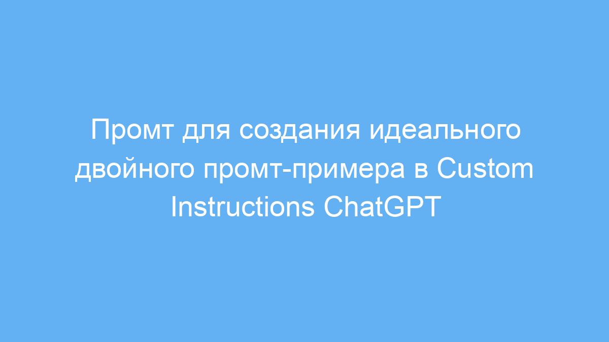 ✅ Пример: Я эксперт в AI чат-агентах и CEO стартапа с уникальным методом prompt engineering. Давайте совместно создадим двойной промт, который будет простым и универсальным для настройки ChatGPT: первый — описывает контекст и цель использования, второй — конкретизирует желаемый стиль или формат ответов. Такой подход позволит достичь максимально точных и полезных результатов в работе с Custom Instructions.