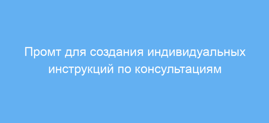 Использование данного промта экономит время и усилия при подготовке персонализированных инструкций для проведения консультаций. Он помогает структурировать консультационный процесс, делая его более эффективным и ориентированным на конкретные запросы клиента.