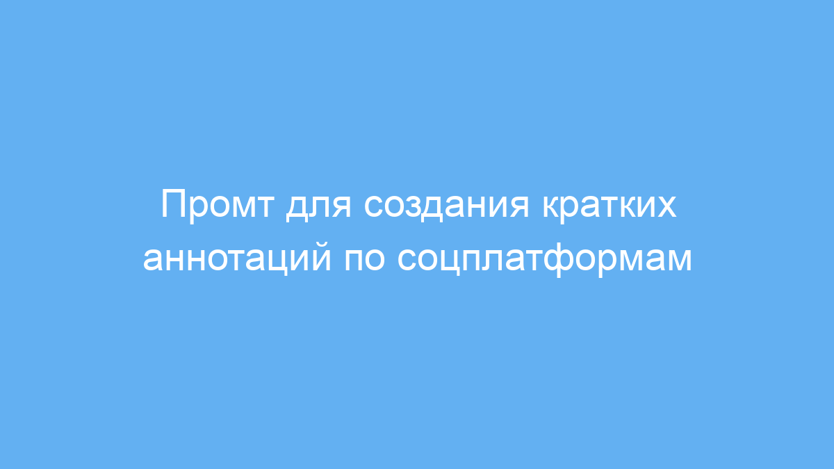 ✅ Этот промт помогает быстро создавать короткие и понятные аннотации для заданной целевой аудитории на выбранной социальной платформе. Он гарантирует, что описание не превышает 280 символов и избегает лишних призывов и эмодзи.