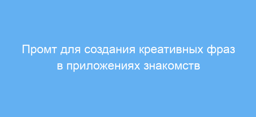 Использование этого промта помогает быстро и просто создавать оригинальные и смешные или романтичные фразы для переписки в приложениях знакомств. Вы экономите время на придумывание сообщений, при этом увеличиваете шанс заинтересовать собеседника благодаря персонализированным, живым фразам, адаптированным под ваш стиль и интересы.