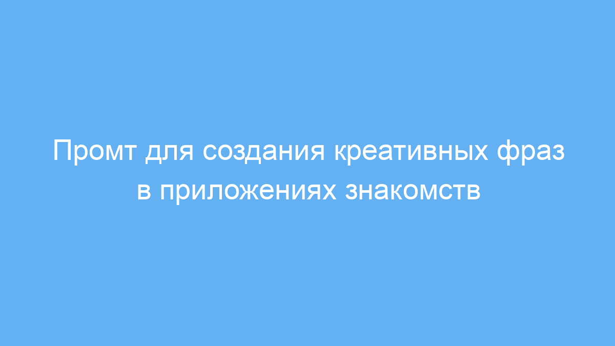 Этот промт предназначен для пользователей, которые хотят улучшить свои результаты в знакомствах через мобильные приложения. Он помогает создавать короткие и привлекательные сообщения, которые привлекают внимание и вызывают интерес у симпатии. Если вы испытываете трудности с придумыванием оригинальных фраз или хотите сделать переписку более живой и запоминающейся, этот промт станет отличным помощником.