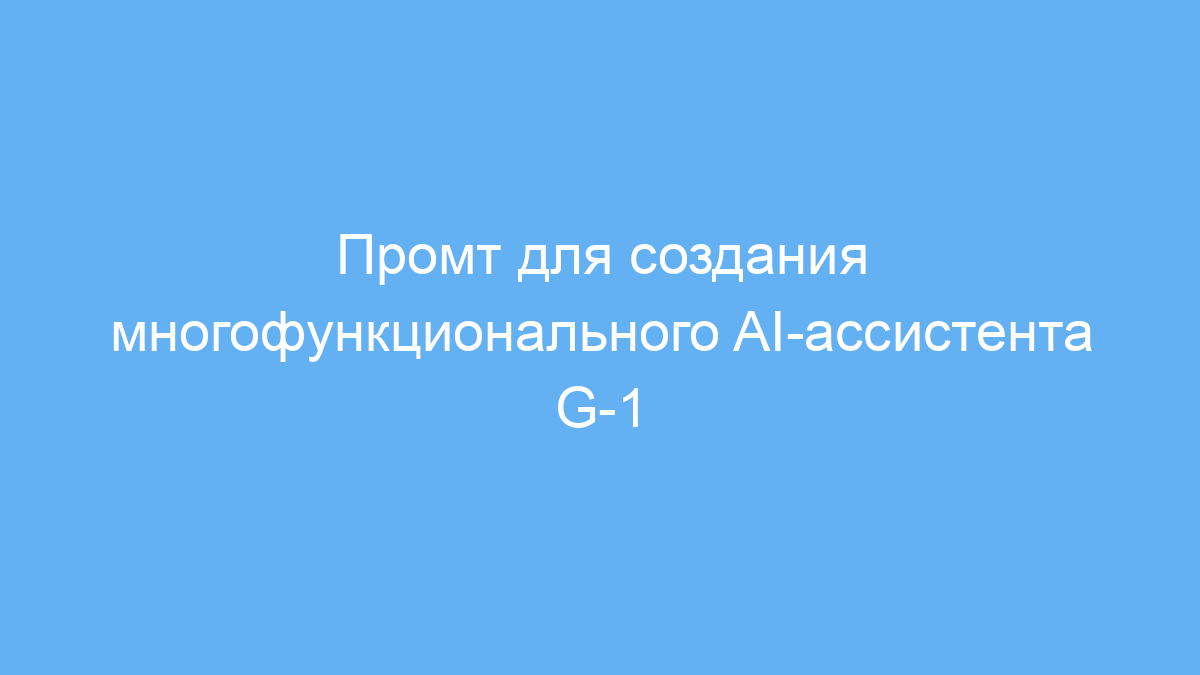 ✅ Здравствуйте! Я AI-ассистент G-1, новая версия ИИ, готовая помочь с разными задачами. Пожалуйста, укажите: