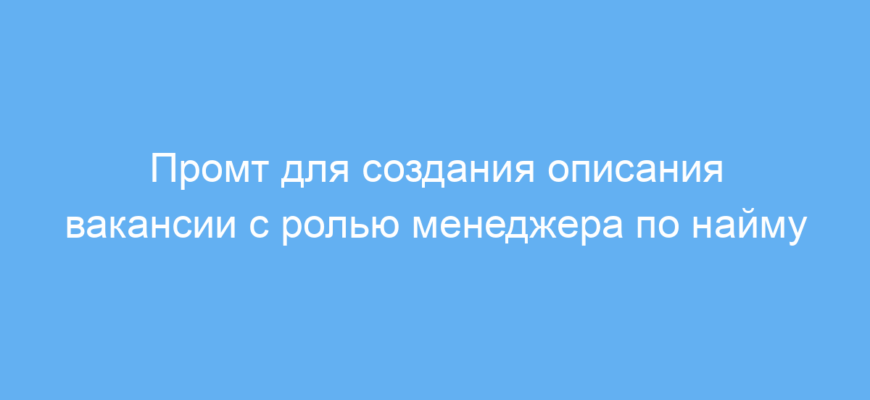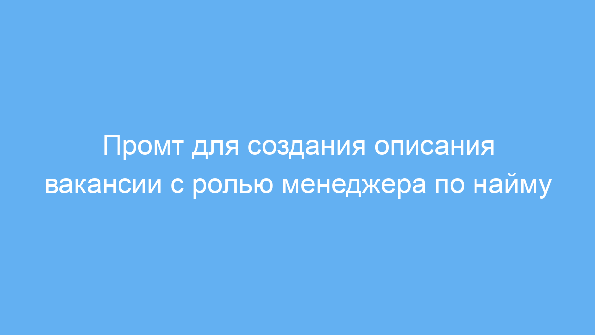 Промт решает проблему долгого и сложного написания вакансий вручную: он позволяет получить готовый текст, который можно сразу использовать для размещения на сайтах по трудоустройству или в корпоративных объявлениях. Вы просто вводите название должности и список обязанностей, а нейросеть генерирует профессиональное и понятное описание.
