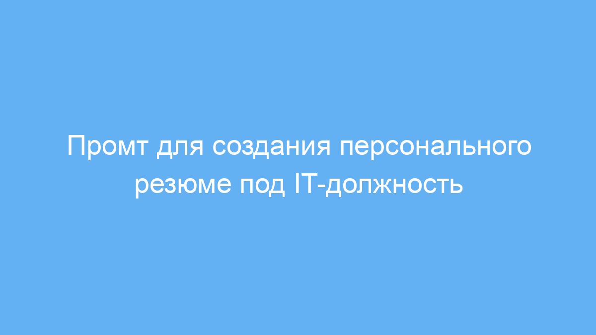 Этот промт создан для тех, кто хочет подготовить профессиональное резюме в IT-сфере. Особенно он полезен кандидатам, стремящимся выделиться среди множества соискателей и получить приглашение на собеседование. Использование промта помогает решить сразу несколько задач: повысить целенаправленность документа, адаптировать его под конкретную вакансию, подчеркнуть уникальные навыки и достижения, а также сделать резюме удобочитаемым и современным.