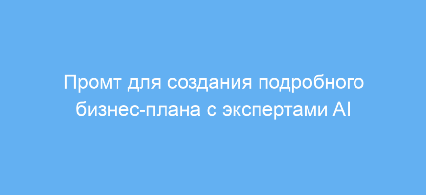 Этот промт предназначен для предпринимателей, стартаперов, консультантов и всех, кто хочет быстро и качественно сформировать полноценный бизнес-план. Он помогает проработать бизнес-идею с разных профессиональных точек зрения — от финансов и юриспруденции до маркетинга и отраслевой экспертизы. Использование промта значительно экономит время, устраняет пробелы в понимании бизнес-процесса и способствует формированию четкого и реалистичного плана развития.