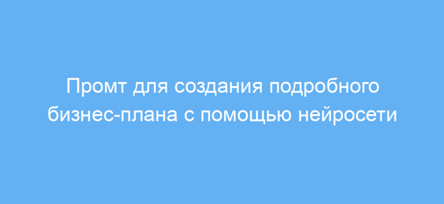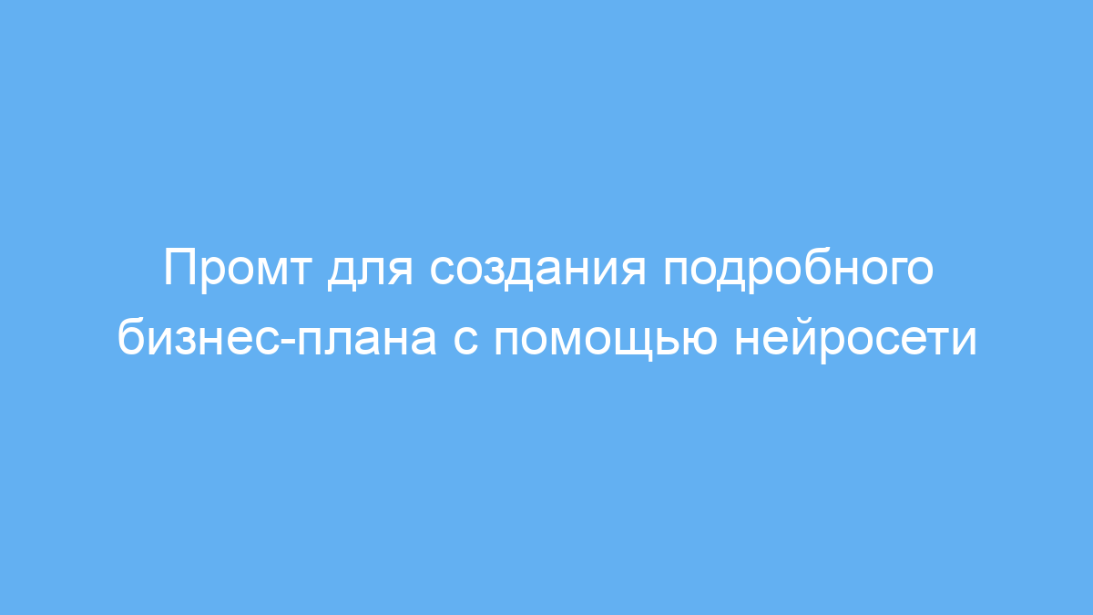 Промт позволяет совместно с нейросетью создать полноценный план, включающий все важные разделы. Вы просто задаёте команду, а нейросеть выступает в роли опытного бизнес-ассистента с ориентацией на стратегическое мышление и практические решения.