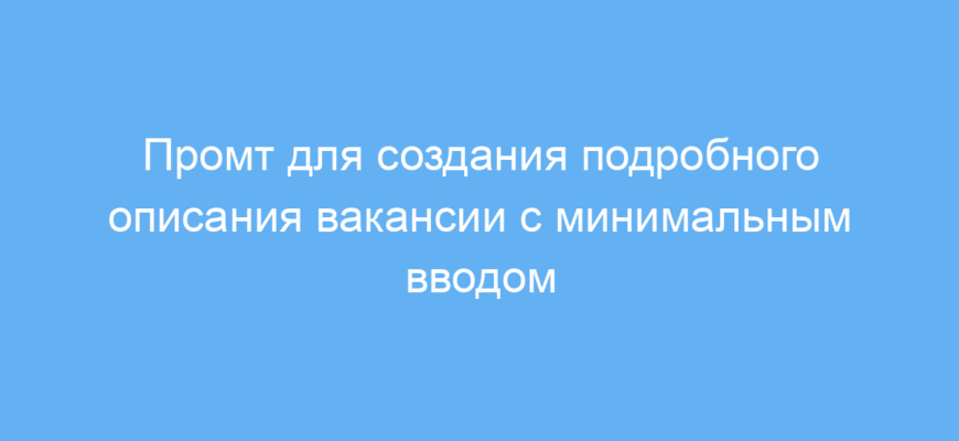 Для эффективного использования промта начните с ввода минимальной, но точной информации о вакансии: название должности, название компании и локация. Это позволит нейросети построить максимально релевантное описание.