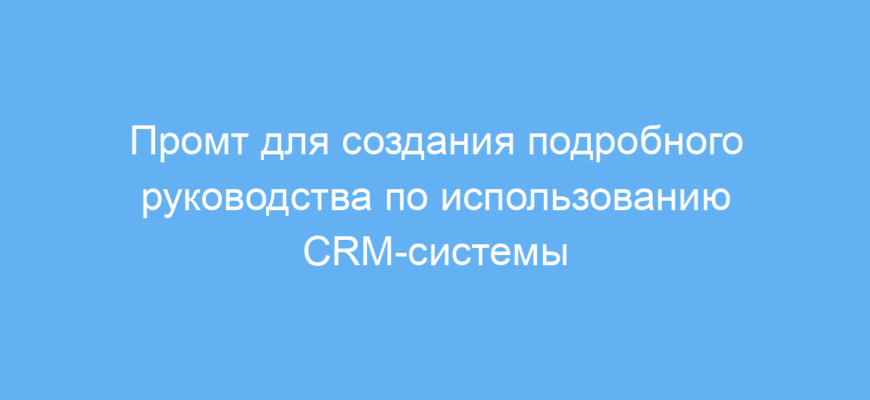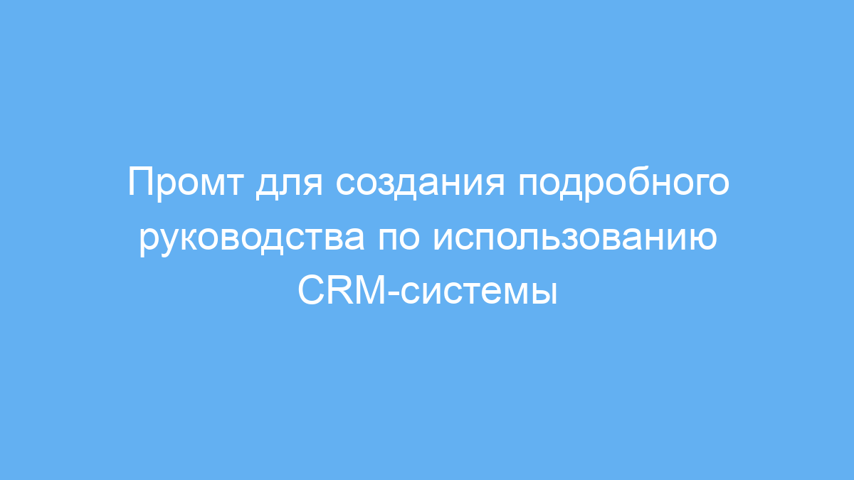 Этот промт предназначен для менеджеров по продажам, маркетологов, специалистов по работе с клиентами, а также владельцев бизнеса, которые хотят создать подробное и понятное руководство по эффективному использованию CRM-систем в продажах. Он помогает систематизировать знания о конкретном CRM-инструменте и адаптировать их под определённый продукт или услугу.