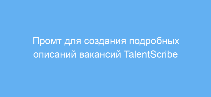 Промт работает следующим образом: он выступает в роли виртуального эксперта TalentScribe, который последовательно запрашивает ключевые данные, такие как опыт и квалификация кандидата, навыки, данные о компании, тип занятости, часовую зону работы и предполагаемый уровень зарплаты. На основе полученной информации нейросеть генерирует подробное, адаптированное и структурированное описание вакансии, легко воспринимаемое соискателями.