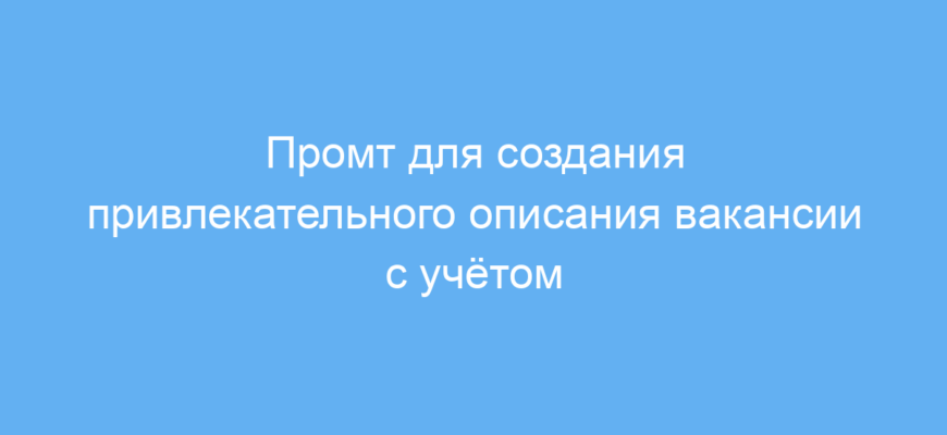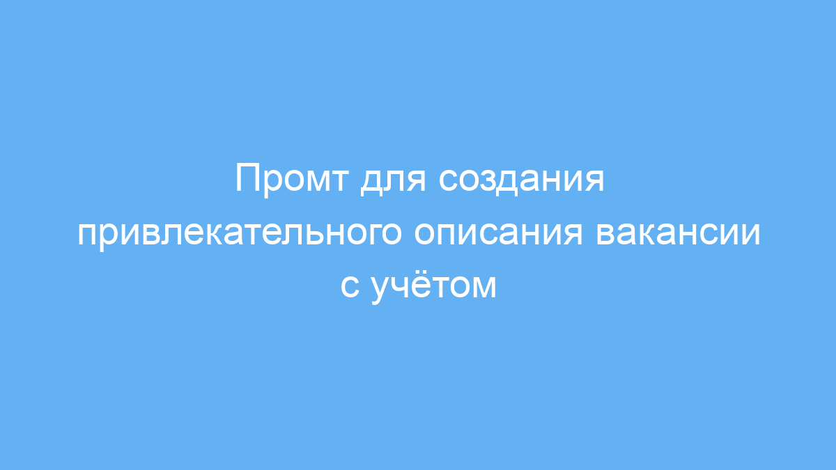 Принцип работы промта прост: пользователь вводит ключевые характеристики и проблемные моменты целевого кандидата, а нейросеть генерирует текст, привлекательный и ориентированный на решение этих проблем в рамках конкретной должности.