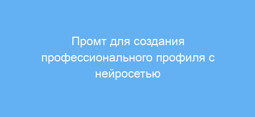 Этот промт значительно экономит время на составление профессионального профиля. Он помогает структурировать информацию, задавая нужные вопросы и создавая читаемый текст с акцентами, полезными для работодателей или клиентов.