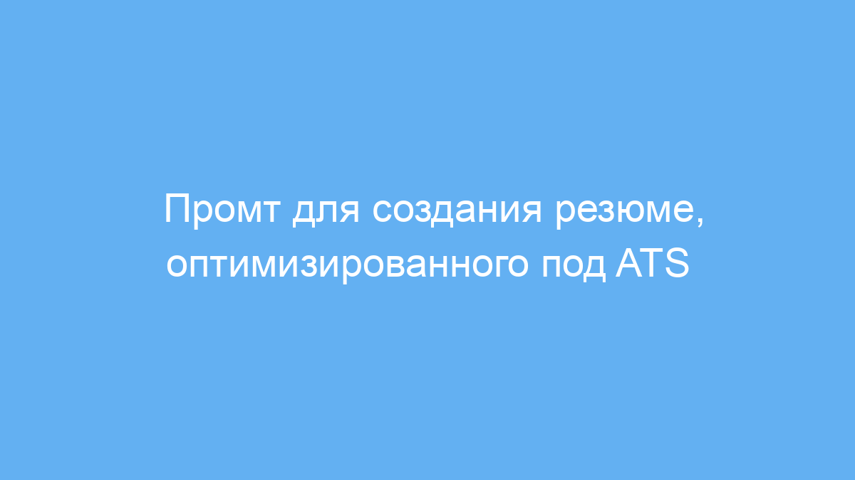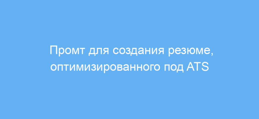 Данный промт предназначен для соискателей, которые хотят создать или улучшить своё резюме, чтобы увеличить шансы получить приглашение на собеседование. Особенно полезен он тем, кто подаётся на вакансии через системы отслеживания кандидатов (ATS) — специальные программы, которые автоматически фильтруют резюме на основе ключевых критериев.
