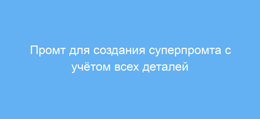 При работе с этим промтом важно максимально чётко и подробно заполнять каждый пункт, чтобы итоговый суперпромт был действительно полезным и соответствовал вашим задачам.