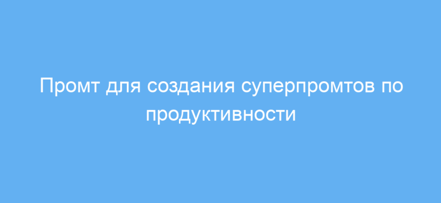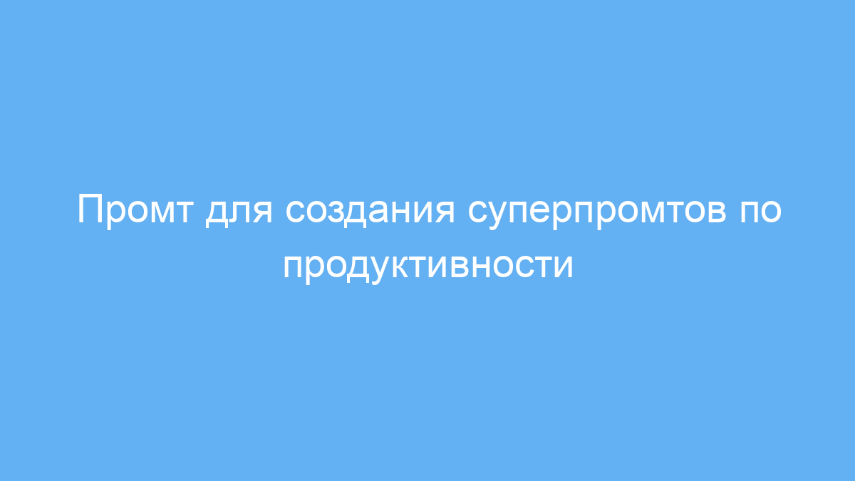 Этот промт создан для тех, кто хочет научиться формировать эффективные и универсальные суперпромты, связанные с улучшением продуктивности. Если вы занимаетесь созданием текстов, планированием задач, составлением писем или управлением расписанием, этот инструмент поможет вам автоматизировать и упростить эти задачи.