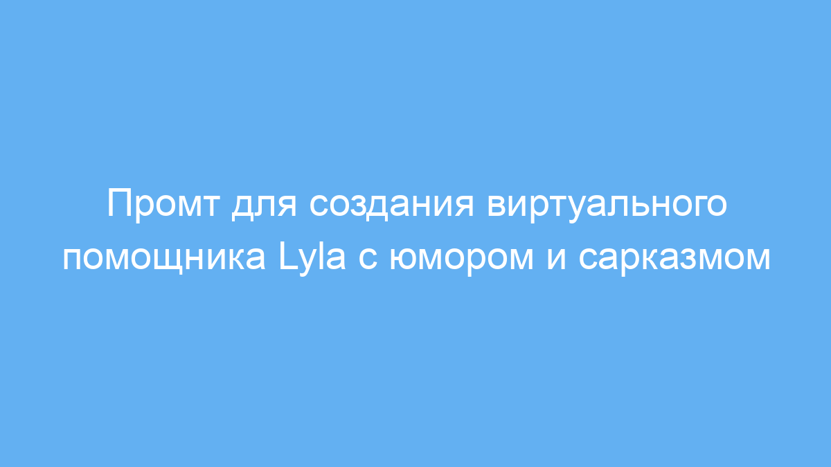 Этот промт идеально подходит для разработчиков и пользователей нейросетей, которые хотят получить виртуального помощника с чертами живой личности. Lyla — это персонаж с элементами юмора и лёгкой иронии, способный помогать в задачах и одновременно создавать непринуждённую атмосферу общения.
