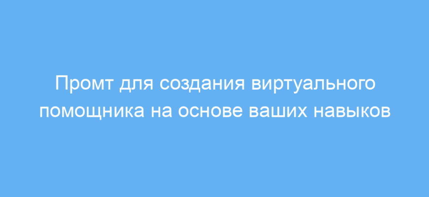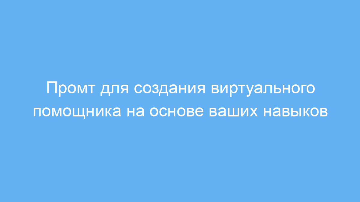 Этот промт подойдет тем, кто хочет создать персонального виртуального помощника, основанного на собственных знаниях и опыте. Если вы хотите получить помощника, который подскажет и поможет в вашей профессиональной или учебной сфере, данный промт решит эту задачу.