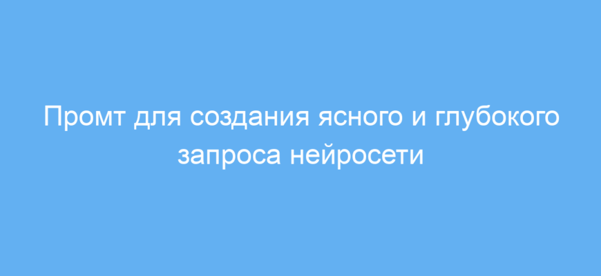 Использование этого промта экономит время и усилия при работе с нейросетью. Он помогает сформулировать запрос чётко и глубоко, что обеспечивает информативный и четкий ответ. Благодаря этому вы получите больше пользы от искусственного интеллекта и сможете быстрее решать задачи.