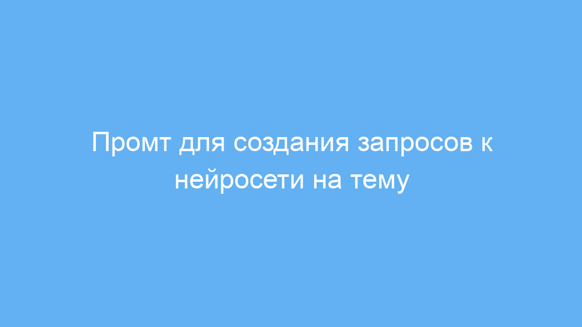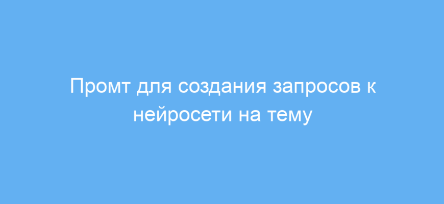 Использование этого промта позволит быстро и легко создавать качественные запросы для нейросети по любой заданной теме. Это значительно упрощает работу с ИИ и позволяет получать более релевантные и структурированные ответы.