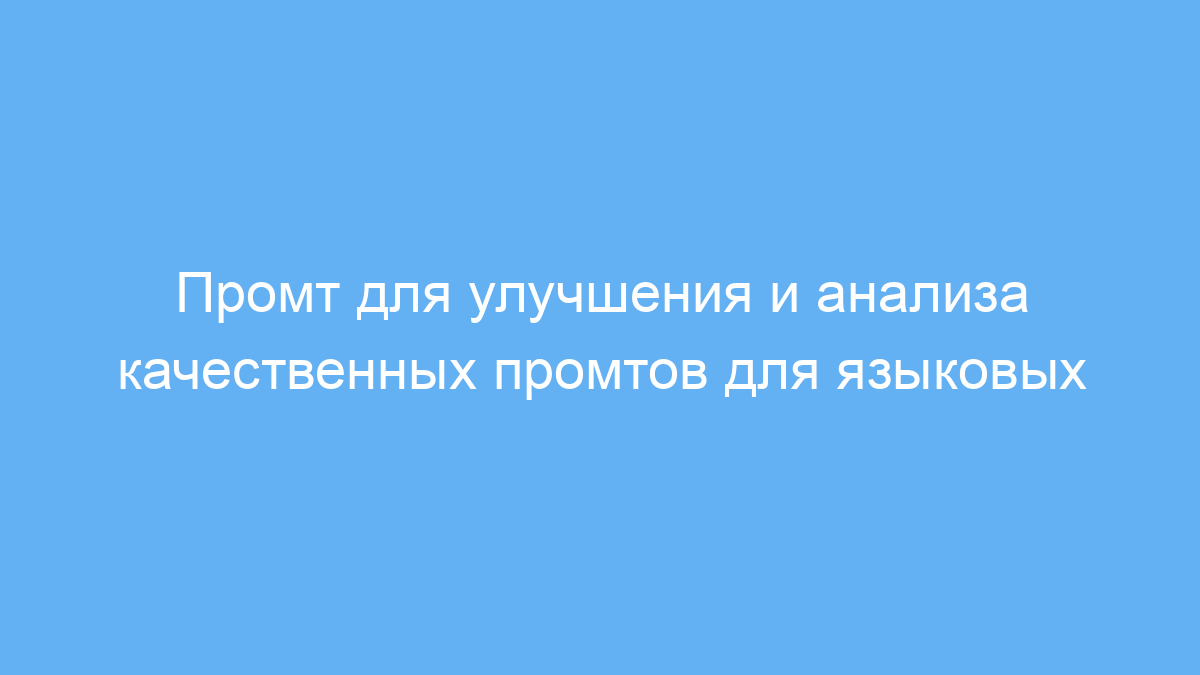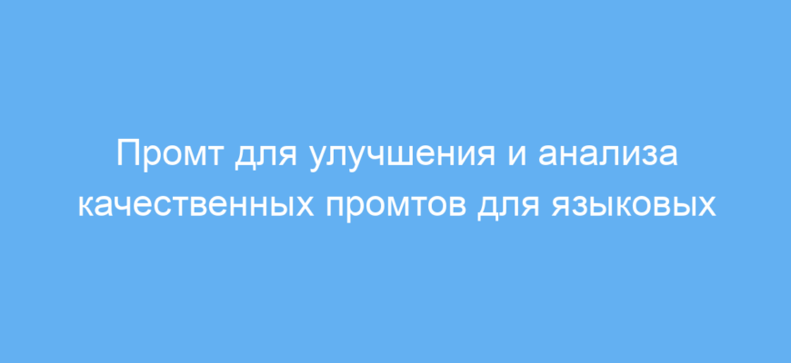 ✅ Исправленный промт: «Проанализируй следующий исходный текст и предложи улучшения для ясности, структурированности и точности: ‘{{PROMPT}}’. Если нужна дополнительная информация, задай уточняющие вопросы.» Вопросы для уточнения: «Какой стиль вы предпочитаете: формальный или неформальный?», «Какова основная цель этого промта?»
