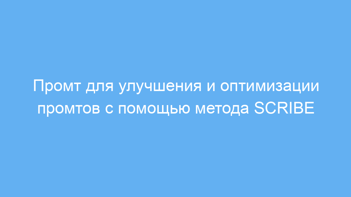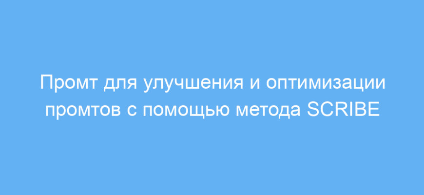 Основная задача промта — анализировать ваш исходный запрос, выявлять зоны для улучшения, предлагать конструктивную критику и обновлённые варианты на основе метода SCRIBE. Метод SCRIBE помогает чётко определить роль, контекст, ответственность, интерпретацию, диалог и оценку в промте, что существенно повышает качество результата.