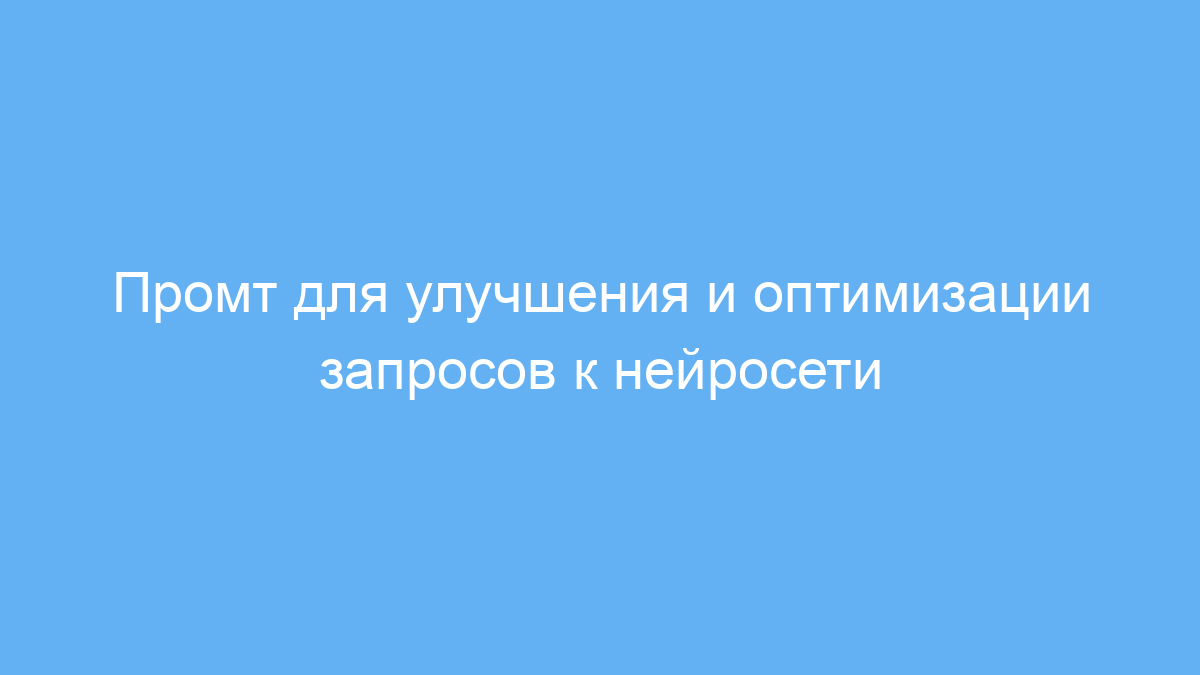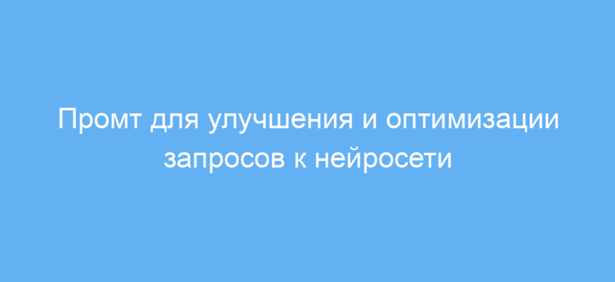 Используйте этот промт как «посредника» между вами и нейросетью. Перед отправкой любого запроса вставьте его в этот промт для улучшения и оптимизации. Он преобразует вашу формулировку в более понятный и структурированный вариант.