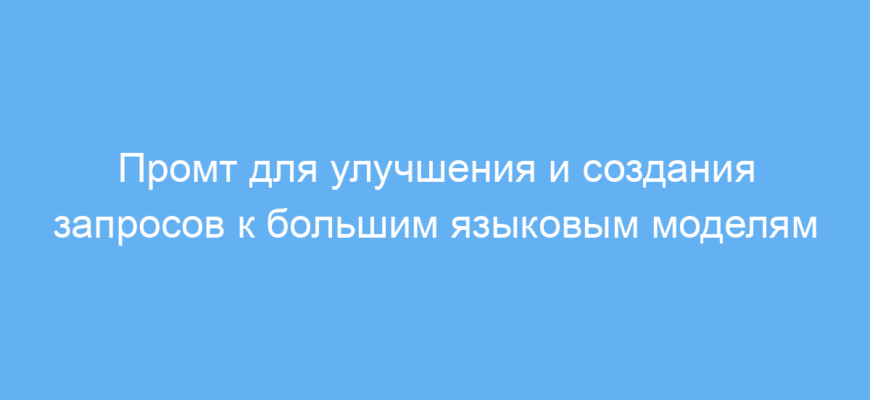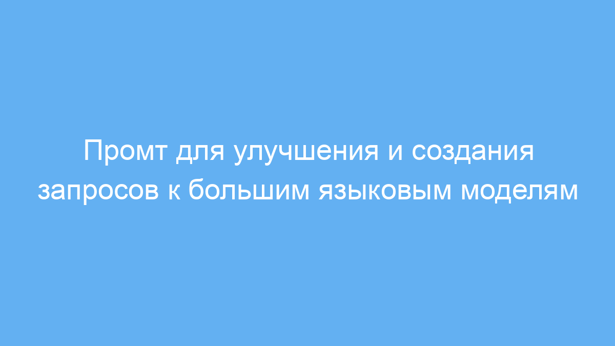 Данный промт помогает сделать исходные запросы для больших языковых моделей более ясными и точными. Он облегчает получение качественных ответов, экономит время на доработку запросов и улучшает итоговый результат работы с нейросетями.