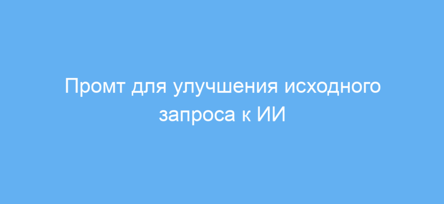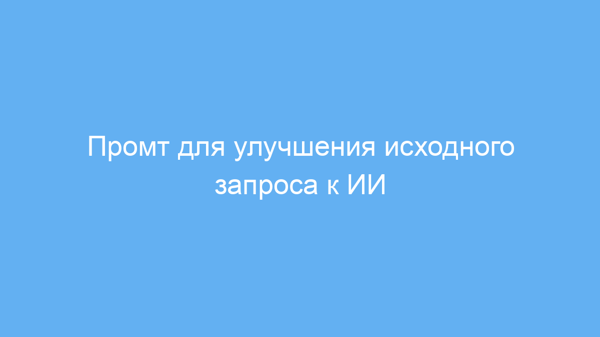 Этот промт предназначен для тех, кто хочет сделать взаимодействие с искусственным интеллектом более эффективным. Часто исходные запросы могут быть расплывчатыми или недостаточно ясными, из-за чего ответы ИИ получаются не такими полезными. С помощью данного промта можно повысить ясность формулировок, увеличить глубину и информативность ответов, а также улучшить структуру исходного запроса.