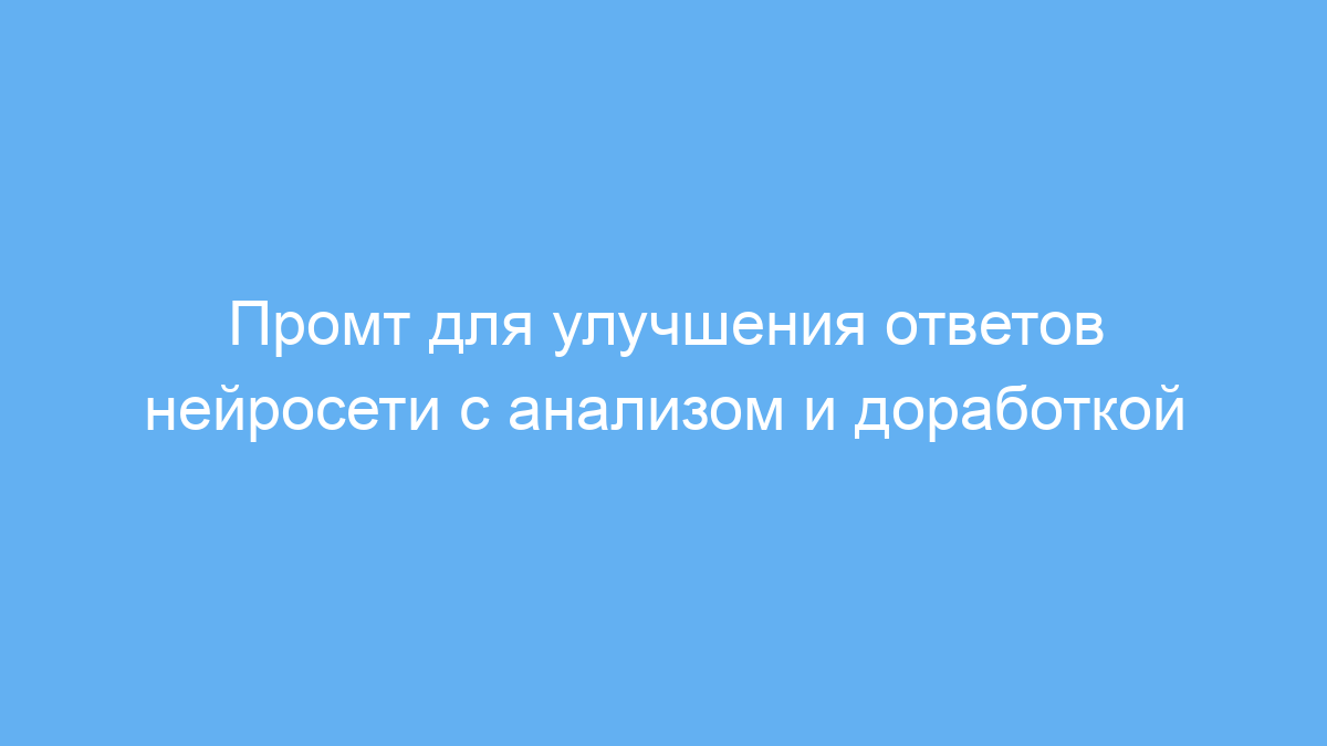 Этот промт помогает получать более глубокие, проработанные и улучшенные ответы от нейросети. Он позволяет не довольствоваться первым вариантом, стимулирует самокритику и повышает качество результата. Это особенно важно при изучении сложных тем, написании текстов или подготовке материалов.