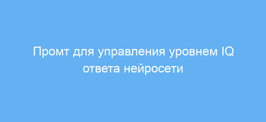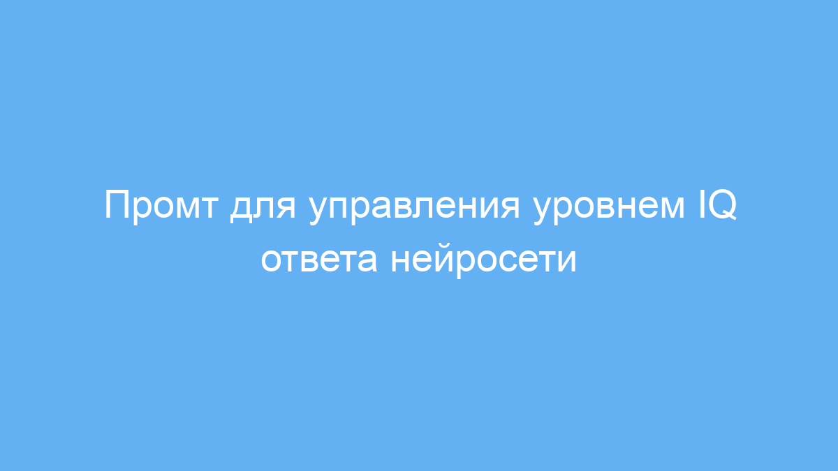 Этот промт предназначен для пользователей нейросетей, которые хотят настроить стиль и качество ответов искусственного интеллекта. Он помогает управлять интеллектуальным уровнем (IQ) сгенерированного текста — от простых, даже с ошибками ответов до сложных, грамотных и креативных разъяснений.