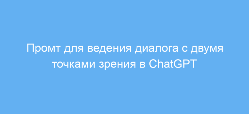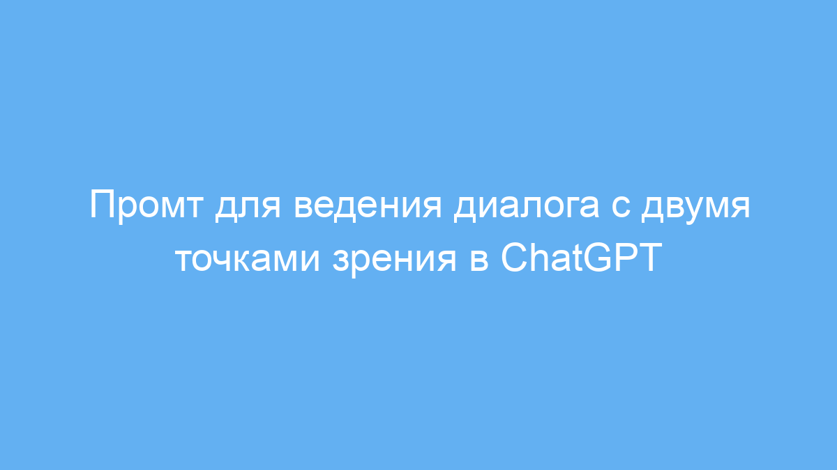 Этот промт помогает сформировать сбалансированный диалог с двумя противоположными взглядами, экономя время на поиск и сопоставление аргументов. Он особенно полезен для анализа, подготовки к дискуссиям, учебы и создания разнопланового контента.