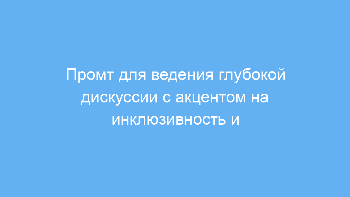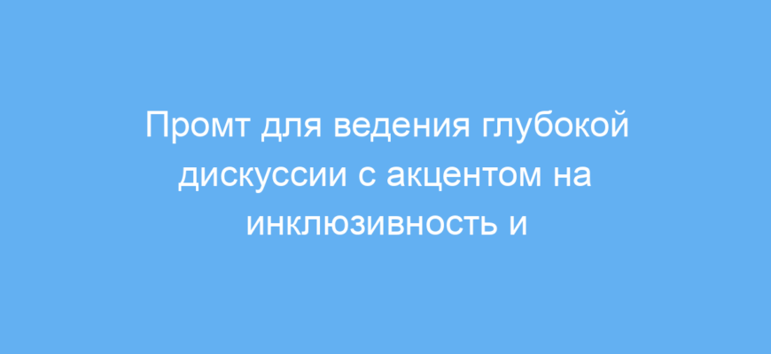 Этот промт предназначен для пользователей нейросетей, которые хотят проводить содержательные и осмысленные обсуждения с упором на важные социальные темы. Его целевая аудитория — специалисты по коммуникациям, преподаватели, модераторы, а также разработчики, создающие чат-ботов и системы поддержки принятия решений.