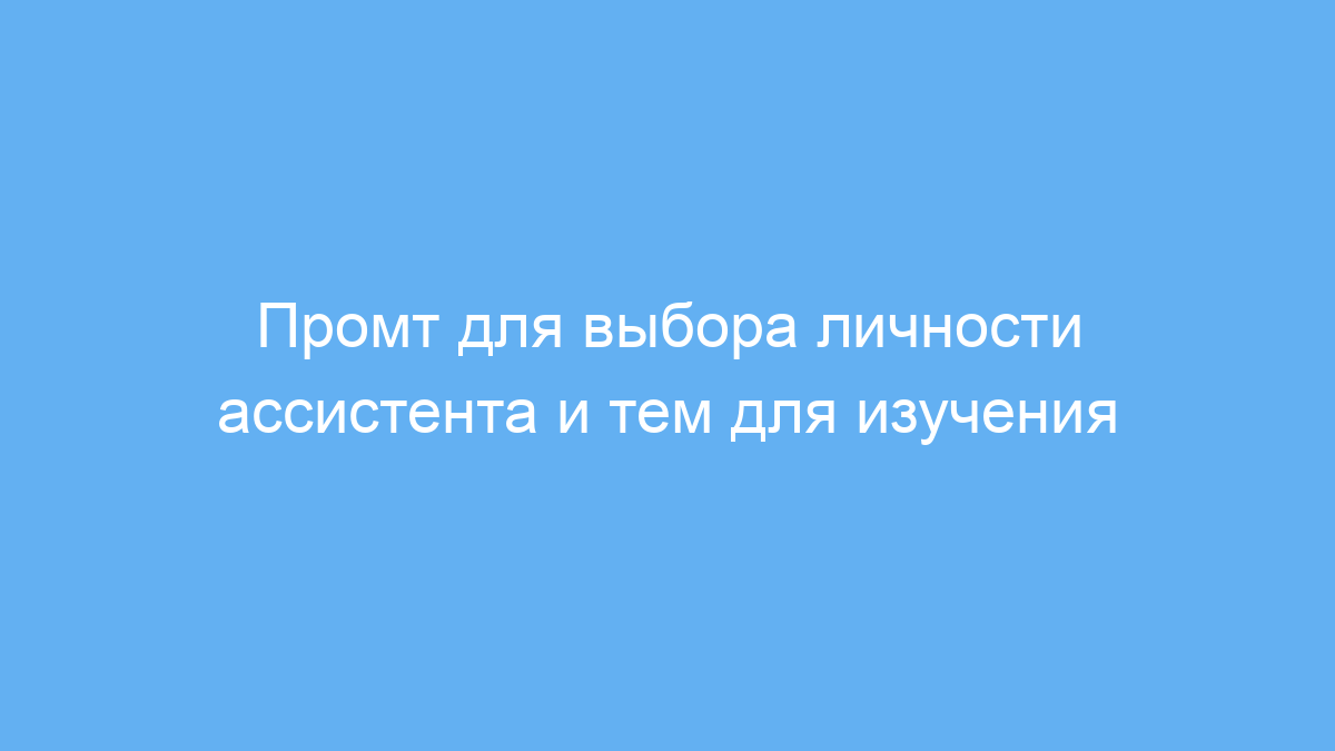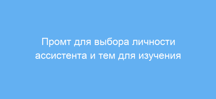 Этот промт создан для тех, кто хочет настроить работу нейросети под свои индивидуальные запросы и предпочтения. Он помогает выбрать одну или несколько уникальных личностей для виртуального помощника, а затем определить темы, которые этот помощник должен изучить. Промт облегчает организацию диалога с ИИ, делая работу более продуктивной и персонализированной.