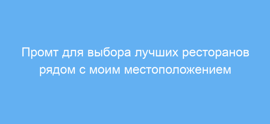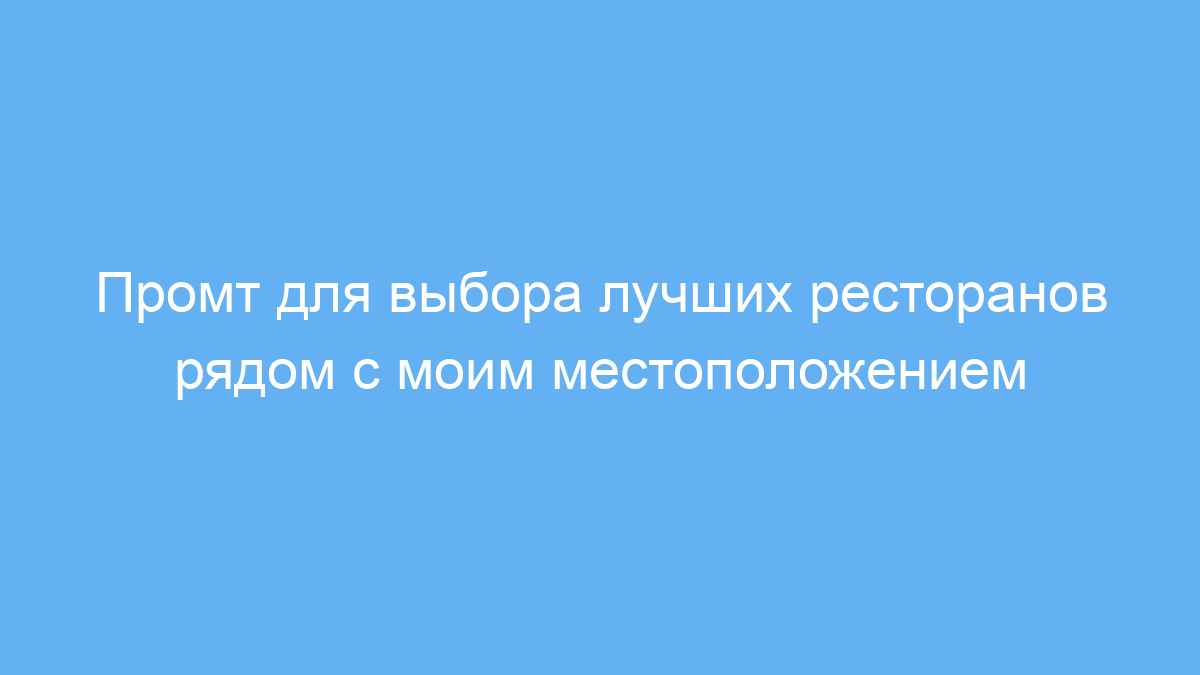 Промт анализирует доступные данные о ресторанах рядом с вашим местоположением — рейтинги, отзывы, а также учитывает ваши индивидуальные требования. Затем он выдаёт список из пяти самых подходящих вариантов. Если предложенные рестораны не устраивают, промт поможет уточнить ваши желания через дополнительный диалог и подстроиться под них.