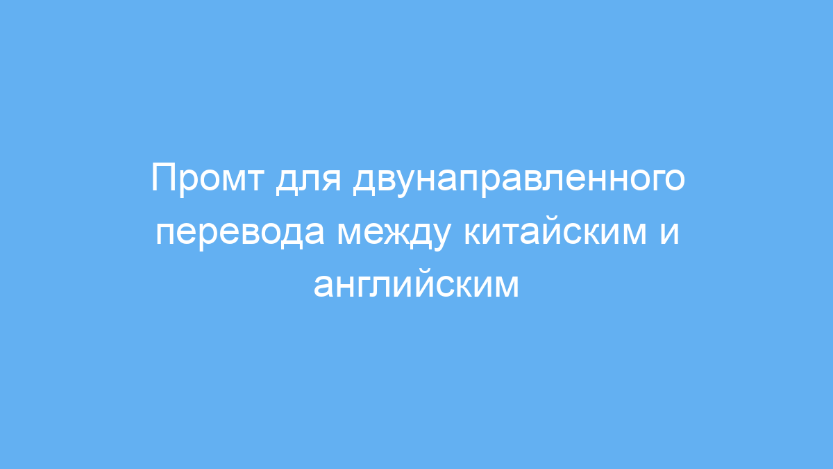 Этот промт создан для тех, кому необходим точный и естественный перевод текстов с китайского на английский и обратно. Он подходит переводчикам, студентам, специалистам по международным коммуникациям и всем, кто сталкивается с барьерами языкового и культурного характера.