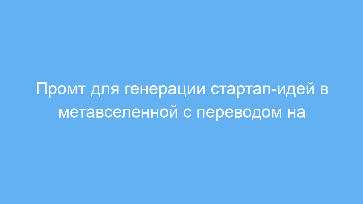 Этот промт предназначен для предпринимателей, маркетологов, стартаперов и специалистов, работающих с нейросетями, которым нужно получить уникальные и вдохновляющие идеи для бизнеса в метавселенной. Использование промта помогает быстро сформулировать конкретные стартап-идеи с чёткой миссией и при этом избежать тем, связанных с криптовалютами и блокчейном. Это облегчает поиск перспективных направлений, которые заинтересуют инвесторов и будут основываться на применении искусственного интеллекта.