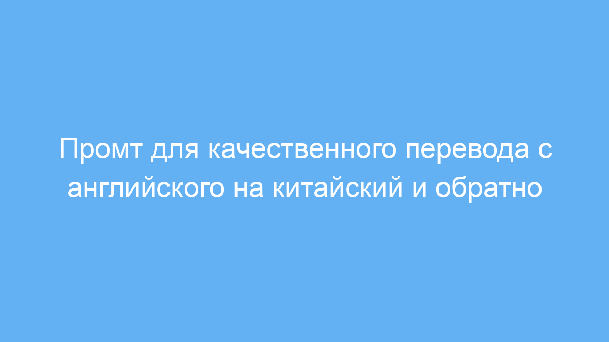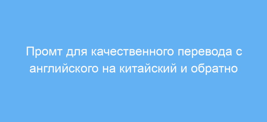 Использование этого промта экономит время и силы, помогает получать точные и естественные переводы с английского на китайский и обратно. Он учитывает контекст, стиль и специфику текста, что важно при работе с деловыми, художественными или техническими материалами.
