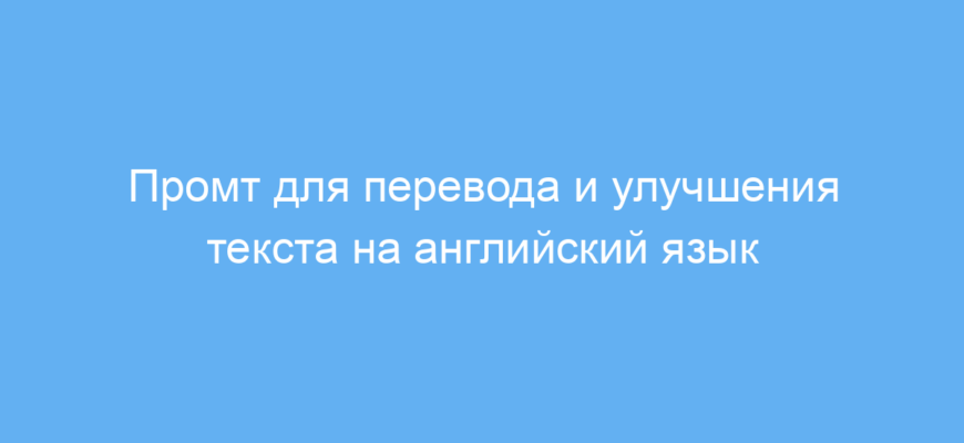 Использование этого промта экономит ваше время на перевод и стилистическую правку. Он помогает создавать высококачественные английские тексты, улучшая лексику и грамматику без лишних объяснений и дополнительных настроек.