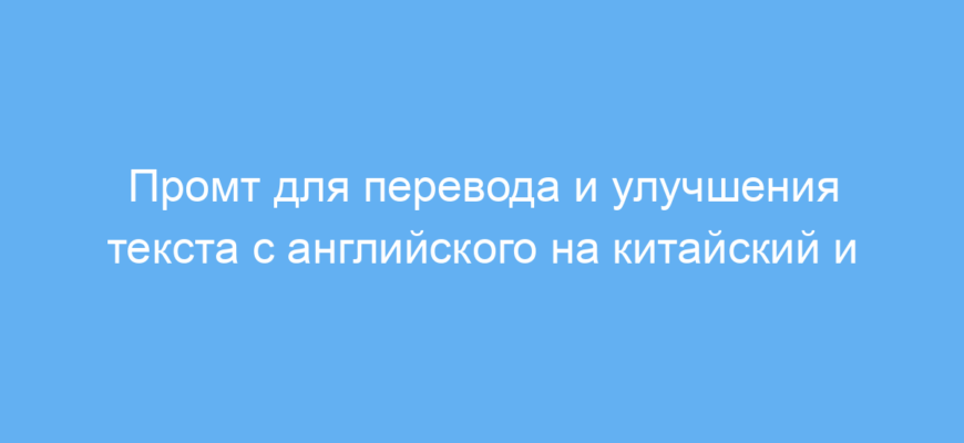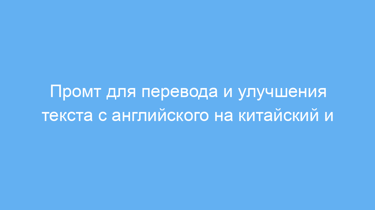 Этот промт создан для тех, кто работает с двумя сложными языками — английским и китайским. Он помогает быстро переводить тексты между этими языками, одновременно исправляя ошибки в орфографии и улучшая стилистику. Такой инструмент особенно полезен переводчикам, студентам, преподавателям и специалистам, которые занимаются подготовкой качественных двуязычных материалов.