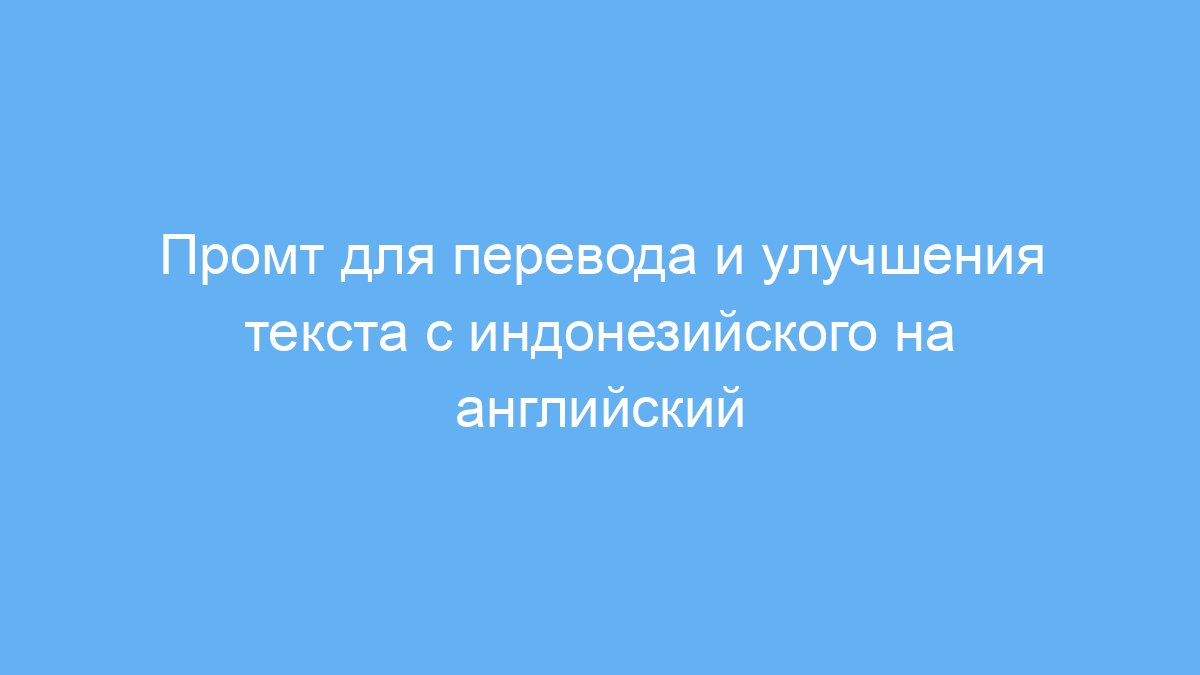 Принцип работы промта простой: вы пишете текст на индонезийском, направляете его через нейросеть с этим промтом, и получаете не только перевод, но и стилистическое улучшение на профессиональном уровне без излишних пояснений.