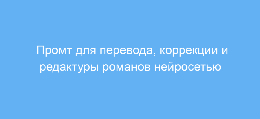 Проблема, которую решает этот промт, связана с трудоемкой обработкой художественных текстов. Перевод романов требует не просто точной передачи слов, но и сохранения настроения, интонаций и художественного стиля. Коррекция и редактура дополнительно улучшают качество текста, делая его понятным и привлекательным для читателя.