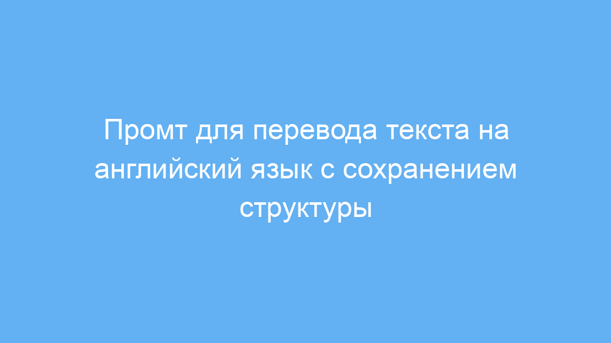 - Промт не корректирует смысл или стилистические ошибки — он переводит дословно.