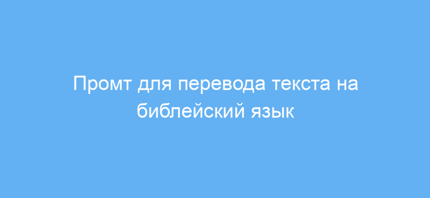 Промт работает путем замены простых слов и фраз на более возвышенные и украшенные, сохраняя при этом исходный смысл предложения. Вы просто вводите предложение на современном языке, а нейросеть преобразует его в стилистике библейского текста, что позволяет быстро получить нужный эффект без глубокой подготовки.