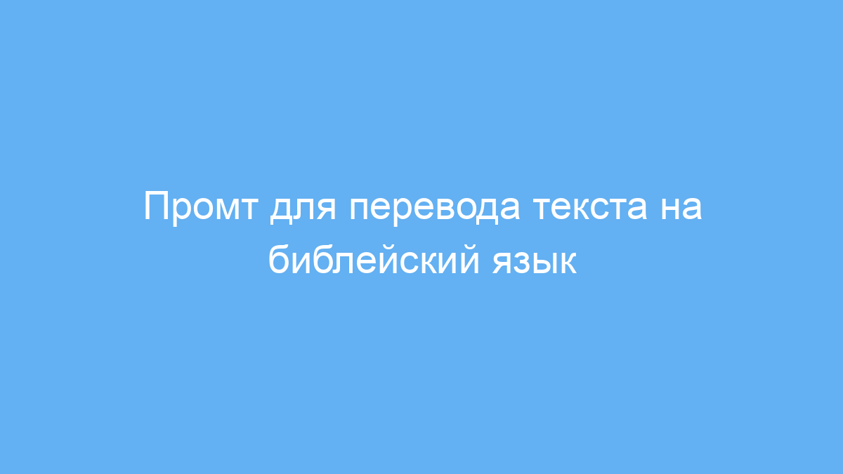 Этот промт предназначен для тех, кто хочет преобразовать обычный современный текст в более торжественный, благородный и изящный библейский стиль. Он помогает сделать речь или письменные работы более выразительными и яркими, что актуально для творческих проектов, литературных экспериментов, учебы и оформления различных материалов с религиозной или стилистической направленностью.