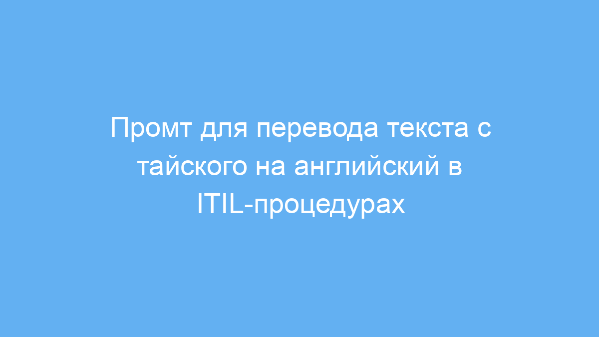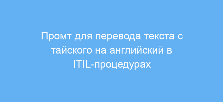 Принцип работы промта прост: он заставляет нейросеть выступать в роли переводчика именно с тайского на английский, сосредотачиваясь на тематике изменений в ITIL. Пользователь вводит исходный текст, а нейросеть выдает качественный перевод, который можно использовать в документации, обучении или коммуникации.