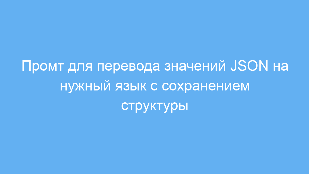 Этот промт экономит время и силы при переводе любых JSON-данных, автоматически сохраняя структуру и формат. Вам не придётся вручную искать и заменять отдельные значения, что значительно упрощает работу с многоязычными проектами, интерфейсами и базами данных.