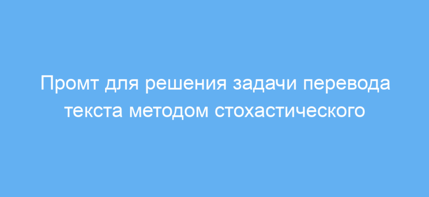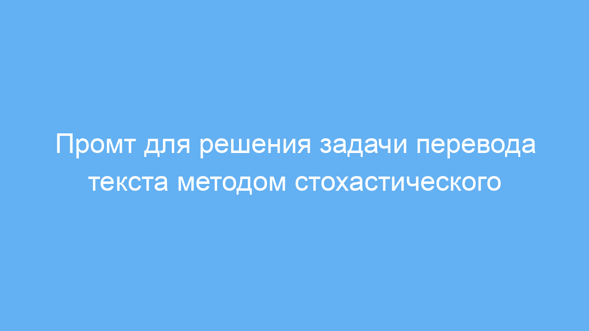 Этот промт предназначен для специалистов, которые хотят применять продвинутые методы оптимизации, например, стохастическое оптимальное управление, для перевода текстов. Он поможет решать задачи, где важно учитывать неопределённость и динамические особенности перевода, повышая качество и адаптивность результата.
